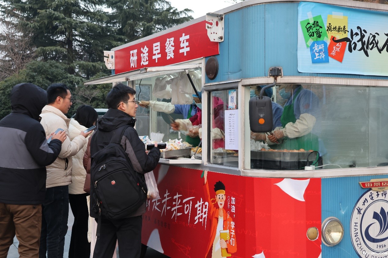 研考期间,正值冬至日。学校餐厅为考研同学送上一份水饺或汤圆,既是节日祝福,也是为考生加油。