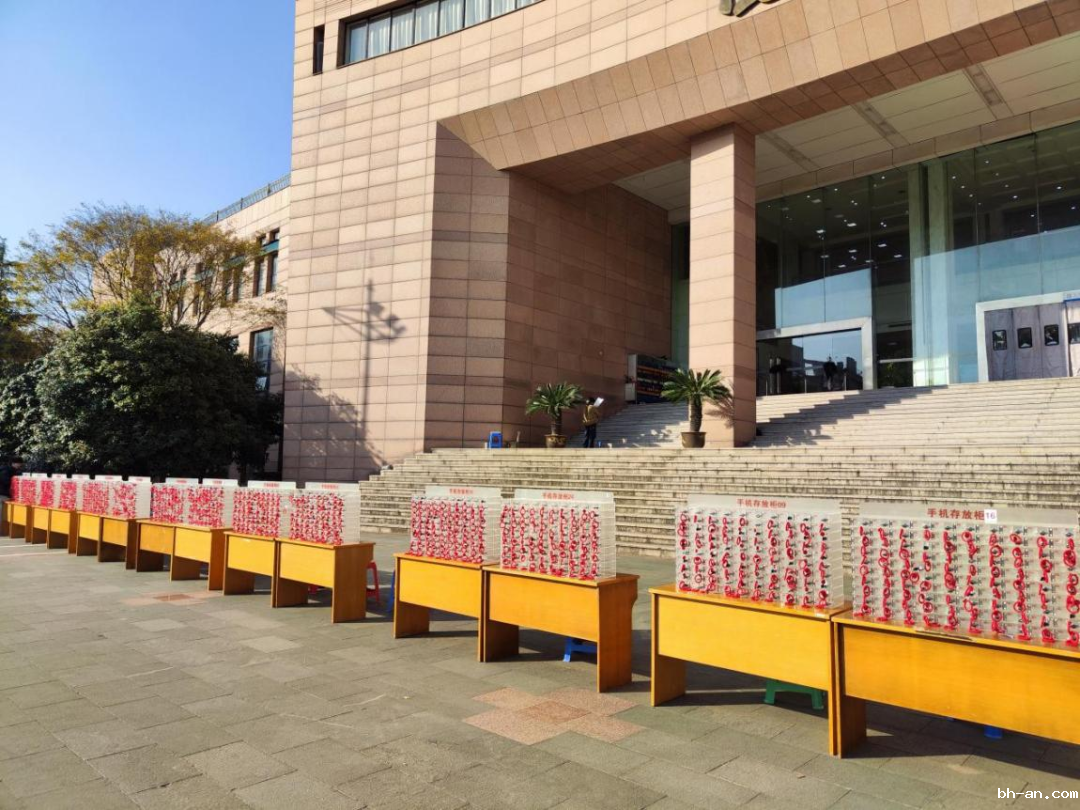 今年学校继续实行智能安检门检查违规物品,启用人脸识别查验身份证件。落实高科技作弊立体防护网,全面实行考生入场二次安检和手机集中存储。在考场所在教学楼附近区域设26个手机存放通道,放置自助手机存储柜,在考场所在教学楼入口处设置5个人脸识别和智能安检通道,在考场门口安排金属探测仪全身检查,实现无线电信号屏蔽全覆盖。