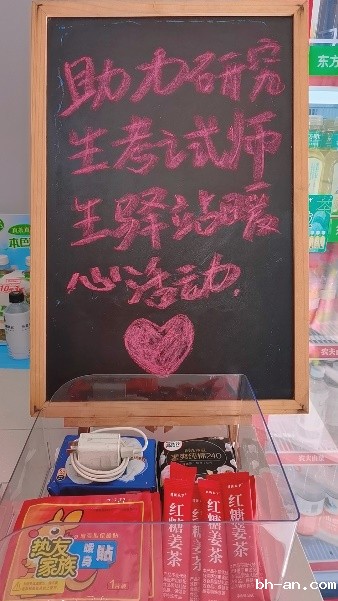 同时,学校开放师生驿站,免费提供热水,紧急用充电设备,暖宝宝,微波炉加热,红糖姜枣茶等。图文工作室开放,便于考生查询和打印相关资料。