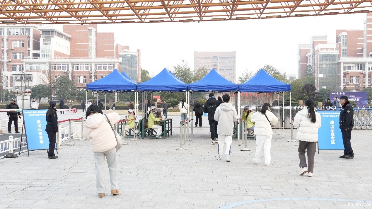 针对考研期间的天气情况,学校在考前加强了对考场教室供电、空调等的自查与维护。在校门入口处安排了爱心巡逻车,确保临近截止入场时间的考生能尽快到达考点。
