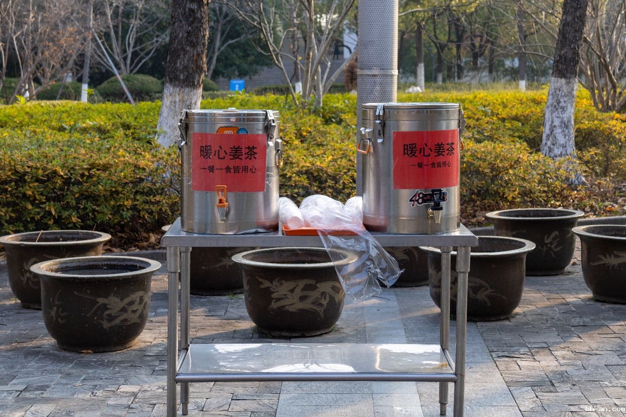 学校在考场出入口安排早餐爱心餐车,并设置保温桶,为全体考生免费提供温暖姜汤;开放校内所有食堂,方便考生用餐;在考场外围附近教室设立考生休息处,开启空调,供考生午休。
